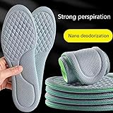 - Features: Brand new and high quality Breathable: Outside mesh fabric with ventilation holes that effectively exchanges air and absorbs sweat, nanometre deodorization, keeping your feet cool and freshes. Lightweight Construction: Constructed with a lightweight foam, the durable insoles are flexible, retaining their shape without flattening for extensive wearabilities. Frees Cutting: The insoles size can be cut according to your shoe. It can be freely cut according to shoe width, therefore it is bring you more convenience. Multiple Functionality: Perfect for basketball, football, sports, camping, running, etc. Memory foam for shock absorption ensures reduction of muscle fatigue in feet and legs. Soft and Comfortable: The heat and frictions reducing fabric make your feet stay cooling, dry and odor frees during strenuous activity, keeping it comfortable and blisters frees. Specifications: Material: Foam Color: As The Picture Shows Package Weight: approx.99g Size Options: 35-36/37-38/39-40/41-42/43-44/45-46 Note: Please allow 1-2cm error due to manual measurement. Please make sure you do not mind before you bid. Due to the difference between different monitors, the picture may not reflect the actual color of the item. Thanks! Package includes: 2 Pair Shoe Insoles