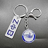Elevate your style with this exquisite ZETA sorority charm keychain from 1920. Made of durable metal, this eye-catching piece features a delicate dove design. Stand out with the intricate letter charms that spell out "ZETA" on this 1920 sorority metal keychain. The enamel nameplate adds a touch of elegance. Customize your look with this unique keychain that boasts a Greek society-inspired design. The charming letter beads add a personalized touch to your accessories. Crafted from high-quality metal, this sorority metal keychain is designed to last. Its adjustable design allows for DIY customization, making it a versatile accessory. Add a touch of handmade beauty to your collection with this blue sorority metal keychain.