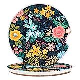 Adastrah Absorbent Car Coasters 2 Pack for Cup Holders, 2.56" Ceramic Stone & Non-Scratch Cork Base Drink Coasters(Flowers 1)