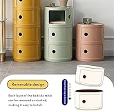 - Introducing our Small Bathroom Cabinet, a round nightstand with drawers that combines style and practicality. This versatile piece of furniture is designed to meet a variety of storage needs with its customizable and stackable features. Each layer of the table is detachable, allowing you to adjust the height and mix and match cabinet colors to create a personalized look. This modular system adapts to your preferences and enhances any space. Crafted from high-quality ABS plastic, this unique end table is built to last, offering durability and resilience. Its space-efficient design is perfect for small bedrooms, fitting seamlessly into any corner or bedside area. This durable construction ensures long-lasting use without easy damage. Best of all, our round nightstand with drawers requires no assembly. Simply unbox and enjoy the convenience of its practical and stylish design. Whether enhancing your bedroom, guest room, or living room, this round nightstand offers a chic and functional solution for your home decor. Specification: Product Name:Mesita de Noche/Nightstand/Bedside Table/End Side Table Material: ABS Plastic Size: 2 Tier:32x40cm(13x16inch), 3 Tier:32x58cm(13x23inch), 4 Tier:32x76cm(13x30inch) Packing list: 1X Round Nightstand with drawers