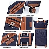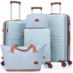 【5 Piece Luggage Set】Luggage sets include a 28-inch large suitcase,24-inch medium checked luggage,20-inch carry on luggage,extended duffel bag,and a toiletry bag.The back sleeve design of the luggage bag can be connected to the retractable luggage handle 【TSA Lock&YKK Zipper】Upgrade With TSA-Approved Lock for security and peace of mind.Luggage sets with reinforced and upgraded YKK zippers to effectively prevent zipper splitting 【High-Quality Materials】The luggage set is made of more durable and lightweight high-quality ABS material,effectively adding a protective layer to the hard shell luggage sets,making them more impact-resistant 【8 Smooth Rolling Silent Wheels 】The suitcase set with 8 rotating wheels adopts high straight shock-absorbing universal wheels,which is quiet and stable. With 360° free rotation and excellent direction control,it offers mobility during the journey 【Three-stage Telescopic Handle】Hard shell suitcases feature an ergonomic 3-stage retractable trolley with TPU handles on the top and sides,making it effective for a variety of occasions