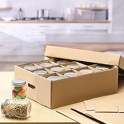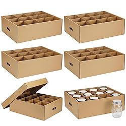 - Features: These mason jar storage containers are designed to ensure a quick and easy assembly. Easy installation means you can start organizing your jars immediately on arrival. Apart from just effective storage, this mason jar storage box provides protection against dust and light which could potentially harm your goods. Specifications: Material: kraft corrugated paper Color: as the picture shown Size: Overall box: about 16.54 x 12.8 x 5.91 inches/ 42 x 32.5 x 15 cm Each divided space: about 3.87 x 3.87 x 5.31 inches/ 9.84 x 9.84 x 13.5 cm Lid: about 16.77 x 12.99 x 2.36 inches/ 42.6 x 33 x 6 cm Capacity: about 16 oz Package includes: 6 x Mason jar storage box Notes: Manual measurement, please allow slight errors on size. The color may exist a slight difference due to different screen displays.