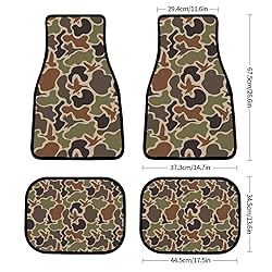 JOJOART Duck Hunter Camouflage Car Carpet Floor Mat Set of 4 Waterproof Anti-Slip Rubber Backing Mat Decorative Universal Fit for Auto Vans Truck Floor Liner Car Accessories