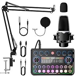 【Comprehensive Podcast Equipment Bundle】SINWE P99 Podcast Equipment Bundle is your all-in-one audio interface and audio mixer solution, designed for optimal podcast recording, live streaming, and DJ, ensuring superior sound quality and intuitive controls 【Advanced Audio Features】Enjoy 4 customizable sound effects and 5 built-in special audio effects, along with 12-step auto-tune and adjustable tones (Treble, Mid-range, Bass).The bundle allows you to modify your voice with 5 unique transformations, from male and female tones to fun monster sounds, enhancing your creative possibilities 【Crystal Clear Audio】Experience exceptional audio with our Multipurpose Condenser Microphones. With high sensitivity and signal-to-noise ratio, every word comes through clearly. Its cardioid pattern picks up audio in front of the sound source while suppressing unwanted noise, ensuring clear and rich sound recording. 【Great Compatibility】Compatible with most software, including OBS Studio, Discord, Twitch, TikTok, YouTube, Facebook, Streamlabs, Streamyard, and Zoom, making recording and streaming a breeze.The P99 Podcast Equipment is also compatible with most laptops, PCs, Windows, macOS, smartphones, and tablets, and supports up to 2 devices and 2 platforms simultaneously. Note: an OTG adapter may be required for smartphones without a 3.5mm jack (not included). 【Easy Setup and Use】 Featuring a USB plug-and-play condenser microphone kit, this kit offers a hassle-free setup that works seamlessly with your devices—no phantom power necessary. It's perfect for singers, podcasters, and voice-over artists requiring efficient system integration 【Reliable Customer Support】Your satisfaction is our priority. Should you encounter any issues while using your podcast equipment bundle, our dedicated after-sales team is available to assist you. Don’t hesitate to reach out for support and to access user guides and helpful videos