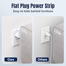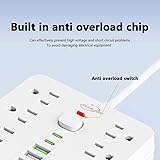 🆕【17 in 1 Compact powerstrip】With dimensions of just 6.5" x 4.3" x 1" (16.5cm x 11cm x 2.5cm), JouleLoom 6 FT extension cord power strip redefines portability without compromising on functionality. 11 AC outlet is strategically spaced 1.2 inches (3cm) apart, allowing for a remarkable 17 plugs to be accommodated effortlessly. Experience unparalleled convenience and versatility in a sleek, space-saving design, perfect for home, office, or travel use. ✅【More Thoughtfully For Use】With 4 centrally positioned USB ports & 2 USB-C ports, alongside 11 AC outlets strategically placed around the edges. This scientific configuration ensures optimal utilization of each socket, accommodating a wide array of devices seamlessly. 🛡️【Multiple Security Protection】JouleLoom 17in1 power strip integrates an 8-point safety system, including surge protection, fire resistance, overload protection, temperature control, and more. It has overload protection and will light up red during normal operation. When overloaded, the power switch will automatically trip to protect the equipment. Press the switch to restore. It ensures complete safety for you and your devices, whether at home or in the office, for long-lasting and stable operation. 🔌【Intelligent USB Charging】- Streamline your charging setup with this surge protector featuring smart USB port technology. Equipped with 4 USB-A and 2 USB-C ports (Max 12W/2.4A), it ensures optimized charging for smartphones, game consoles, eliminating the need for bulky USB chargers. 🏠【Space Saving Design】- Experience the ultimate in space efficiency with JouleLoom 6FT surge protector's slim flat plug, measuring a mere 0.7 inches thick. Unlike traditional plugs, its unique 45-degree right-angle design ensures it won't obstruct neighboring outlets. Plus, with two multi-directional hanging holes, you can easily mount it horizontally or vertically on workstations, walls, counters, bedrooms, optimizing your space like never before. 【Safety Assurance】 - ETL Certified,It is safe for you to use. Our friendly and reliable customer service will respond to you within 24 hours. You can purchase with confidence, with our 30-day return and 12-month replacement.
