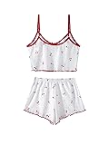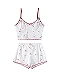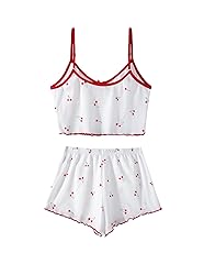 - Comfy Graphic Print 2 Piece Pajamas Ribbed Shorts and Top Set for Women Summer Outfits Type: Casual and Cute Pattern Type:Red Cherry Patterned Closure Type: Pull On Number of Pieces: 2 Piece Set (1 x Cropped Cami and 1 x Shorts ) Hilinker Cozy Pajamas Matching Pj Set Sleep Sets for Women - V Neck Cami with Shorts Lounge in style with our trendy women's two piece lounge sets, including a sleeveless cropped camisole and soft shorts, complete with fruit printed and comfortable ribbed-knit. Simple design and classic colours make this cute pajamas for teen girls looks sleek and chic, show your charm. While the stretchy fabric ensures maximum comfort all day long. Ribbed cami top feature a sexy v-neck, bow tie and contrast trim design, and adjustable straps that you can adjust the length as you like. The shorts' elasticated waist ensures an effortless fit. This sexy lingerie for women naughty outfits as a daily lounge set, suitable for casual life, holidays, travel, Valentine's Day, etc. Also suitable for light exercise such as yoga, pilates, jogging, etc. Get your hands on the cami pajama set for women now and experience the perfect blend of comfort and style. Don't miss out on this must-have piece that is sure to become a wardrobe favorite. Please refer to the size chart before ordering. The size may have 0.4""--0.8"" differences due to manual measurements, your understanding will be much appreciated. Care Instructions: Machine wash or professional dry clean Season:Summer & Spring & Fall & Winter