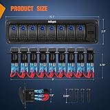 Multi-function Designed: This switch panel is integrated with 6 rocker switches and PD Type C and USB charger with voltmeter. suitable for most 12V-24V DC Cars, UTVS/ATVS, trucks, trailers, RVS, caravans, buses, marine boats, yachts etc. Efficient Charge: PD Type C and QC 3.0 USB Charger enable you charge two devices simultaneously at full speed. It works for all USB-powered devices. Makes the charger 40% faster than conventional chargers. Led Voltage Display: The voltmeter is builted in the center of the USB charger, clearly shows the current readings of working volts, easily notice the voltage condition of the vehicles. Quality Assurance: The panel is made of strengthened aluminum and well-conductive pins,ensure long lasting durability highly optimized for general use and will give you a pleasant experience. Wide Application: The switches allow you to control up to 2 different devices,such as Led Light Bars, Rear Lights, Rock Lights, Windshield Lights,Off road Lights, Sasquatch Lights, Zombie lights and Wench power, etc. The complimentary transparent and night glow stickers enable you to DIY the switch according to your preference.