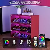 Premium Material: The shoe organizer is made of high-quality MDF wood and tempered glass, which is sturdy and durable, which is very stable after assembly. Stand the rigors of daily use and easy to wipe clean. RGB LED Light: Featuring a DIY LED light strip with USB port wireless remote control and mobile app compatibility, this shoes box allows you to customize lighting effects, color temperatures, and modes. You can even sync the lights to the rhythm of your music, creating a pleasant and joyful atmosphere. Large Storage Space: This shoe cabinet has plenty of room for up to size 15, you can now stand up your hightops behind our easy to open, sliding doors designed to keep your shoes clean. Perfect Display: Our sneaker storage use highly clear tempered glass door and wooden body, all your collection will be always displayed perfectly. You'll be able to target the right shoes at a glance without opening all the shoe rack. Stackable Design: Increase storage space by stacking two or three units, while saving more space and make your home, bedroom look clean and elegant. And They can be according to your placement needs, hallway, living room, wardrobe, closet, etc.