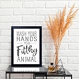 - Applicable Room Small "wash your hands you filthy animal sign" framed bathroom wall art is a perfect wall decorations for bathroom, restroom, also suitable for kids bathroom decor. Is this bathroom quote wall decor art hand painted or printed? This bathroom decor wall art ,HD pictures photo printed on high quality and water-proof canvas with vivid color, UV-resistant inks. Is this black and white bathroom art come with frames or just canvas rolled? This bathroom wall art is stretched on a solid wooden inner frames, and high quality black floating frames, ready to hang on wall. What about quality? All bathroom decor wall arts are carefully checked by professional QC before shipping .Every art piece will be checked carefully, including the artwork, the package, the hooks, we will ensure it is perfect for shipping. IMPORTANT FOR SIZE: Please note the display pictures are only for illustration purposes. They were not taken in real display rooms and do not represent the real size of the artwork set. They are just as an idea to help you being aware of how this canvas wall art looks like in a room. Please measure your wall properly and make sure you pick the right size.