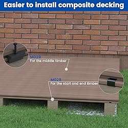 Invisible Design: M029 hidden deck fasteners concealed design, helping securely attach deck boards without visible nails or screws on the surface. Installing on the sides of the deck boards, creates a sleek, nail-free surface that enhances the beauty of deck platform Uniform Spacing: Muzata hidden deck fasteners ensure consistent gaps between the decking boards. This not only creates an orderly appearance but also achieve air circulation and drainage, keeping a clean, aesthetically pleasing deck look Material & Compatibility: Made of high-density anti-UV polymer material, this deck fastener guarantees strong durability and corrosion resistance, which compatible with a wide range of decking materials, including composite deck boards, hardwoods, treated lumber, etc Application coverage range: If your joist space apart 16'', 750pcs Hidden Deck Fastener can cover about 350 sq.ft. application. If your joist space apart 12'', 750pcs can cover about 300 sq.ft. application. Muzata offer many packs options for your different deck area, detailed information, please refer to the chart Complete deck accessories: Muzata provide different deck accessories with different functions, help you saving time and effort on deck project. Adjustable Deck Foundation Base Support M031 is suitable for floating deck project, help you set the joist orderly at uneven place. Deck Starter Clips M028 and Hidden Fasteners M029 is sepecial deck nails for seamless deck installation, Water Drain Membrane M059 is for deck drainage system
