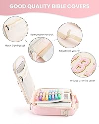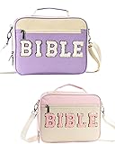 Chenille Letter Bible Cover: With delicate chenille letter patches on the front,our bible cover case features a elegant design ,offering both style and comfort while providing premium protection for your sacred scriptures. Pink and Purple Bible Cover Case Bible Case for Women:Great for standard, medium, or larger size Bible measures itself 10.24 x 7.87 x 2.17 inches/ 26 x 20 x 5.5 cm, Pink and Purple Bible Cover Case Bible carrying case for women has multiple organizing pockets for almost everything. Multi-functional Bible Bag:Equipped with a convenient zipper closure and interior pockets for storing bookmarks, notes, and other essentials.This bible cover can also be used as colored pencil bag, electronic organizer bag, briefcase, cosmetic bag,etc. Premium Protection:Made from waterproof polyester and smooth metal zippers, this bible carrying case is built to last and will effectively preserve your bible from dust, scratches, and everyday wear and tear with our durable cover case. Thoughtful Bible Cover: With delicate Chenille letter,the bible holder case for women looks amazing and is soft to the touch.Whether for yourself or a loved one, our Bible cover case makes a meaningful Bible Cover for any occasion, fostering a deeper connection to faith and spirituality.