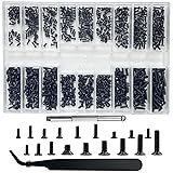 18 Kinds, Metric M1.2 M1.4 M1.6 M2.0 very small screws assortment kit Made of high-quality carbon steel to ensure long time us Micro screws are suitable for repairing various eyeglasses, sunglasses, watches, clocks, computers, reading glasses, jewelries, small electronics, cell phone and other mini precision parts that require mini screws Approx. 660pcs of assorted black tiny screws packed in a transparent plastic box, pls open the lid from the attached size table facing upward, open it carefully to avoid falling or mixing up Equipped with tweezers & micro 3 in 1 screwdriver (including a Phillips head, a Flat head and a star nut driver). Tweezers help you pick up the mini screws easily and quickly