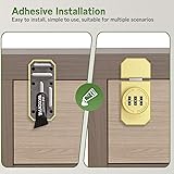 MeBantoo Keyless 3-Digit Combination Lock, Mechanical Stick-on Drawer Latch, Security Adhesive Cabinet Lock for Closet & Barn One-Way Doors (1, Gold)