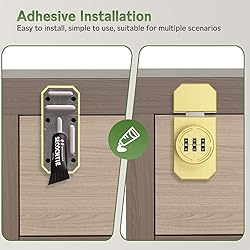 Safety and Solidity: The internal structure of the drawer lock is delicately set, and the zinc alloy material provides excellent durability, corrosion resistance and sturdiness, adding security to your personal belongings Important Compatibility Note: This combination lock is not compatible with double doors, sliding doors, or doors with large gaps. Warm Tip: Confirm your door type before buying to ensure the product meets your lock needs Resettable Password: The 3-digit code offers 1000 different combinations and is difficult to crack. You can reset the code at any time, the initial password of the keyless cabinet lock is "000" Paste Installation: Just apply the adhesive on the back of the combination lock, then paste the lock to the pre-installed position, then wait for 72 hours to use. The attached strong adhesive has strong adhesion and is securely installed Widely Applicable: The cabinet lock is suitable for installation on cabinets, lockers, office cabinets, file cabinets, barn doors, closets, safes and so on. Note: If this product is installed on the door, it is only suitable for one-way door Size and Product List: Combination lock size is 3-2/16"(80mm) x 1-8/16"(38mm) (L x W); included accessories are adhesive, code change tool, auxiliary stickers, instruction manuals
