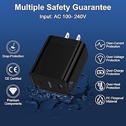 【Fully Compatible】: 25W 2 port usb c wall charger super fast charges for all devices which support QC4.0 QC3.0 QC2.0 and PPS PD 3.0 protocol, like cell phones, tablets, pad. Compatible for Samsung Galaxy S26 Ultra S26+ S26, A17 S25 Ultra S25+ S25 A36 A26 A56 A15 5g A35 A16 5G A55 A25 S24 FE ultra S24 plus S24, Z Fold 7 6 5 4 3,Z Flip 7 FE 7 6 5 4 3,A24 4G,A14 5G A13, A54 A34 A53 A03s S23 S23+ S23 Ultra,S21 FE,A23 A33 A52 A32 A12,S22 S21 S20; iPhone 17 16 15; Google Pixel 10 9a 9 and more 【25W Samsung Fast Charger Block】: This samsung galaxy a15 5g charger is designed with two 25W USB C + USB C ports, making it compatible with the Samsung galaxy a35 and other type c android devices. It delivers a super fast charging speed of up to 25 Watts/3 Amps, which is 5 times faster than a standard 1A samsung phone charger. With Samsung galaxy s24 ultra charger, you can charge your battery from 0 to 60% in just 30 minutes, and achieve a full charge in only 0.8-1 hours 【Dual Port iPhone Fast Charger Plug】: The Samsung galaxy z fold 6 flip 6 usb type c android phone charger plug provides a total output of 25W/4.8A for charging two devices simultaneously. When using one port for charging, the maximum speed is at an impressive rate of 25W/3A 【Superior Safety】: With the intelligent chip inside, samsung s25 charging block type c matches the current as your device's need automatically. Samsung wall charger block usbc cable provides multi protections against over-current, over-voltage, over-heating and short-circuit, Keep your device safe and ensure the safer charging overnight 【What You Get】: 1 Pack 25W Double Fast USB C Wall Charger, 7x 24 Hours friendly customer service, 12-month hassle-free warranty. If you have any questions about our 2 Port usbc cargador, please free to contact us, we promise to help you solute the problem