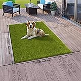 Realistic Design: CooRug artificial grass features advanced simulation technology, making it look and feel almost identical to natural grass. It provides a natural and comfortable visual experience. Eco-friendly Materials: This grass turf rug is made of environmentally friendly material, non-toxic, lead-free, safe for children and pets to play. It is also UV-resistant and will not fade in the sun for a long time. Low Maintenance: Unlike natural grass, artificial grass requires no mowing, watering, spraying or fertilizing. Enjoy the lush, green look of awell-kept lawn without the usual hassle. Durability and Longevity: Made from high-quality, UV- and fire-resistant materials, our artificial grass is designed to withstand harsh weather conditions without fading or wearing out. Easy to Clean: This turf grass features a durable rubber backing with drainage holes, allowing water and urine to drain away quickly. It is easy to clean, just rinse with soap and water.