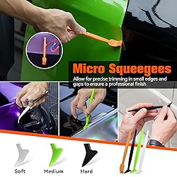 Complete 21-in-1 Vinyl Wrap Kit: This professional vinyl wrap kit provides 21 essential car wrap tools for smooth vehicle wrap installation. From squeegees to cutting tools and magnets, everything is included to help beginners and professionals achieve a flawless car vinyl wrap Tackle Every Corner & Curve: Multiple squeegees in different shapes and hardness levels ensure smooth application on flat panels, tight edges, and curves, delivering a bubble-free, scratch-free wrap Cut & Trim with Precision: A sharp utility knife with spare blades and a safety film cutter ensures accurate trimming of wrap film. Whether cutting straight lines or fine details, you can achieve clean edges without damaging your car’s paint surface Faster, Easier Film Positioning: Strong magnet holders secure the film in place while you measure, align, and trim, making car vinyl wrap and window tint installation faster and easier. A must-have tool for large automotive wrap projects Protection for Film & Installer: Soft felt buffers, microfiber towel, and protective gloves prevent scratches, dust, and fingerprints—keeping both the vinyl and your hands safe throughout the wrapping process