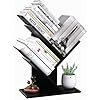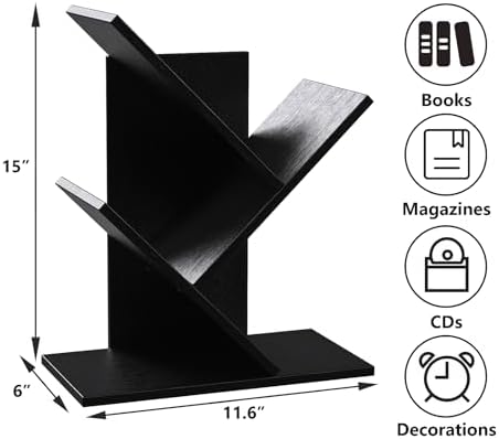 R RUISHENG 3 Tier Small Tree Bookshelf Storage Organizer Shelves Floor Standing Bookcase Desk Wood Storage Rack for Home Office Living Room Bedroom Display for Book Magazine CD Manga Black