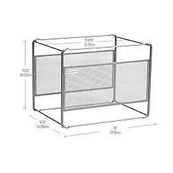 Modern Style: The metal mesh construction of this organizer offers a sleek, modern look that complements any decor. It holds standard letter size hanging folders Simple Setup: Assemble and snap this basket together effortlessly in minutes, no need for tools Easy to Use: Access files and documents quickly and conveniently within the hanging file folders Durable and Easy to Clean: Made from strong metal mesh, this organizer is both durable and easy to clean with mild soap and a soft cloth Dimensions: Measuring 13 inches long x 9.75 inches wide x 10.25 inches tall (33 x 27.77 x 26.04 cm). The support bars measure 12.875 inches wide and it weighs 1.76 lbs (0.8 kg)