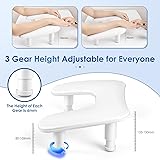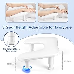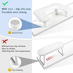 Upgraded Adjustable U-shaped Nail Arm Rest: Our white nail tech arm rest features an advanced adjustable height design with 3 levels of free height adjustment, ranging from 125mm to 150mm for the front bracket and from 80-105mm for the rear bracket; Simply rotate the bottom bracket to adjust the height of the nail rest, ergonomic design reduces the fatigue of manicurists and customers for long periods of time Built-in Thick Non-slip Pad: Are you still worried about your nail rest stand shaking? Our white u-shaped hand pillow is embedded with a thickened non-slip pad, which eliminates the need to stick and never fall off, ensuring strong stability on any flat surface, that won't scratch your expensive nail table and allow clients to enjoy and relax throughout the manicure process Large Space and Space Saving: While ensuring the size can accommodate most nail lamps on the market, our manicure stand hand rest is optimized to dimensions of 17.5*11.2*1.96in; This design avoids taking up too much of your desktop space, making it perfect for professional nail technicians working in nail salons and beginners practicing nail art at home Detachable and No Installation Required: Our manicure arm cushion does not require installation tools, just gently push the bottom bracket into the slot to complete the installation and start your manicure. When not in use or carried out, simply remove the bottom bracket, making it very easy to store and carry out More Comfortable and Durable: Our adjustable nail armrest cushion are filled with high resilience sponge, which is ideal for long manicure use; At the same time, the leather material can prevent sweat and glue oil from seeping out, making the arm rest cushion more durable and easy to clean, perfect for as a gift to friends, family or lovers on important occasions