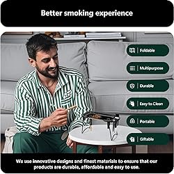 I𝗻𝗰𝗹𝘂𝗱𝗲𝗱 C𝗼𝗻𝘁𝗲𝗻𝘁 — Get rolling tray with cone loader, complete set of accessories and a brand card (packaged in exquisite gift box), suitable for personal use and gift giving. S𝘁𝘆𝗹𝗲 M𝗲𝗲𝘁𝘀 F𝘂𝗻𝗰𝘁𝗶𝗼𝗻 — Durable and sturdy metal with minimalist design. Very suitable for travel, high rounded design, comfortable and easy to use. A𝘃a𝗶𝗹a𝗯𝗹𝗲 C𝗼𝗻𝗲 S𝗶𝘇𝗲𝘀 — For king size or 1-1/4 size pre rolled cones. You can refer to the instructions or videos for specific operations. E𝘅𝗾𝘂𝗶𝘀𝗶𝘁𝗲 a𝗻𝗱 P𝗼𝗿𝘁a𝗯𝗹𝗲 — Size is 9 x 4 inches. Foldable easy to carry and does not take too much space, perfect for a desktop or small table and fits inside a desk drawer. A𝗽𝗽𝗹𝗶𝗰a𝗯𝗹𝗲 O𝗰𝗰a𝘀𝗶𝗼𝗻𝘀 — Has a stylish and beautiful appearance, so as a gift, it is a good choice whether it is for father, boyfriend, husband or friend. Roygra rolling tray can be used in patio, homes, offices, outdoors, balconies, bars, cafes, hotels, and more.