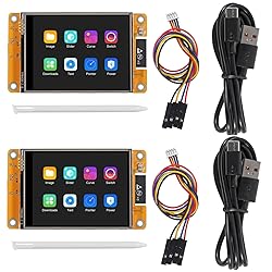 SUPPORT: 1. UART/SPI/I2C/PWM/ADC/DAC and other interfaces. 2. OV2640 and OV7670 cameras, built-in flash. 3.picture WiFI upload. 4. TF card. 5. multiple sleep modes. 6. Embedded Lwip and FreeRTOS. 7. STA/AP/STA+AP working mode. 8. Smart Config. 9.AirKiss one-click network configuration. 10. secondary development. MULTIFUNCTIONAL: ESP32-2432S028 development board is based on the ESP32-DOWDQ6 controller, features a low-power, dual-core CPU with clock frequency up to 240MHZ. It integrates a wealth of resource peripherals, including high-speed SDIO, SPI, UART, and other functionalities. REMOTE IOT DEVELOPMENT BOARD: Real lnternet of Things development tool with a controllable display screen. The display screen is highly customizable and can be used to control various APP remote controls, collect environmental data, and provide remote control. Furthermore, it is compatible with data fusion, setting remote parameters, and a variety of other batch development applications. You WILL GET: 2pcs esp32 display, 2pcs USB 2.0 to micro USB data cable, 2pcs dupont female to 1.25mm wire, 2pc touch screen pen. WIDELY USED: Home smart device image transmission, Wireless monitoring, Smart agriculture QR wireless recognition, Wireless positioning system signal, And other IoT applications.