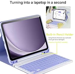 - Compatible for Galaxy Tab A9 Plus/A9+ 11 Inch 2023 With Keyboard Case Model SM-X210/X216/X218, Wireless Bluetooth Keyboard Cover Compatible for Samsung Galaxy Tablet A9+ Built-in Pencil Holder- Purple