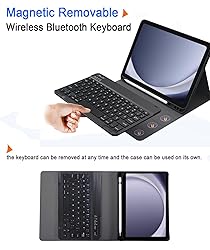 Only Fit: This Wireless Bluetooth keyboard case cover only fits Samsung Galaxy Tab A9 Plus 11 inch 2023 release tablet model (SM-X210/X216/X218), Not compatible with other tablet models!!! The pen is not included Magnetic Removable Keyboard: This tab A9+/A9 plus case and keyboard are magnetically attached so the keyboard can be removed and the case can be used on its own. The keyboard Turns your tablet into laptop in seconds. Ideal for business, traveling and studying Built-in Pencil Holder: The Keyboard case for your A9+ comes with a built-in holder for your S Pen. easily to carry you Pen with iPad. Using Pencil whenever you want and never get lost or damaged. Pencil or iPad not included Three Viewing Angles: you can adjust the angle to your preference, Three dents on the case for propping up the tablet into three different viewing angles, providing a comfortable typing experience. Perfect for watching, working or playing games Full-body Protection:The Keyboard case is made of PU leather and TPU, the front and back covered by soft PU, the inside is made of durable TPU which holds your tablet securely and protects its back and four corners, providing protection against drops and scratches