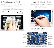 - There are Three versions of this 5inch LCD. This is 5DP-CAPLCD-B Version, with Wide-bezel capacitive touch display, optical bonding process features 800cd/m² High Brightness, 1024×600 Pixels, HDMI Interface, USB Type-C Touch Port, Toughened Glass Panel, Integrated Structure Features 5inch IPS screen with a hardware resolution of 1024x600, and the software resolution can reach up to 1920x1080. 5-point capacitive touch, with toughened glass panel, hardness up to 6H. Support multi-language OSD menu (can be used for power control, adjusting brightness/contrast, etc.) Support HDMI audio output, onboard 3.5mm headphone jack, and 4PIN speaker jack. Compatible with all versions of Raspberry Pi ---Compatible with Raspberry Pi OS, 5-point/single point touch, No driver needed. ---Supports Ubuntu / Kali / WIN10 IoT, single point touch, No driver needed. ---Supports Retropie, No driver needed. Compatible with Jetson Series ---Supports Jetson Nano / TX2 / Xavier NX / Orin series boards ---Supports Ubuntu, single point touch, No driver needed Compatible with PC ---Supports Windows 11 / 10 / 8.1 / 8 / 7, 5-point touch, No driver needed Comes with Online Tutorial Usage Guide and Online Development Resource, Please check: n9.cl/kiwk3 Package Content 5DP-CAPLCD-B x1 HDMI cable ~1m x1 HDMI to Micro HDMI adapter x1 USB Type A to Type C cable ~1m x1 Micro HDMI adapter x1 HDMI adapter x1 FFC 20PIN cable (2pcs) x1 3Pin cable x1 Screws pack x1 PH1.25 4PIN to Type-A cable x1