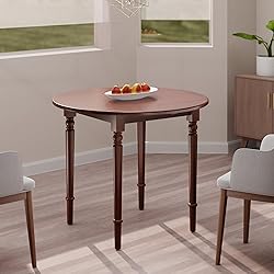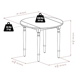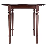- The Winsome Sorella Round Drop Leaf Table offers a classic, comfortable feel to a kitchen and smaller dining areas. It features two drop leaves that, when open, creates a 36" round table that will seat up to four for a casual Sunday brunch or an intimate dinner. Generous height clearance that allows for dining chairs of any style to fit. When space is limited, lower one or both leaves to create the size that best suits your needs. In between meals, fold the leaves down to convert the table into a console on which to keep serve ware, napkins, favorite salt & pepper shakers, or a vase of flowers. The graceful detailing of the turned legs and the full aprons provide a solid base for the round top and its two drop leaves. Finished in a rich walnut and constructed of solid wood for a long-lasting durability. Complete your table with the Winsome Wood Windsor Chairs for a unified space (each sold separately). Conveniently packed and shipped in 1 box, that includes the hardware necessary for assembling. Replacement part request can be submitted directly to the manufacturer within 60 days from date of purchase. -Dimensions: 35.98”W x 35.98”D x 30.08"H (with leaves open) 35.98”W x 24.72”D x 30.08"H (with both leaves lowered) -Distance between legs: 18.27" -Apron to ground clearance: 26.73"H -Static weight capacity; center 100lb, leaf 15lb ea. Assembly required Ships in 1 box