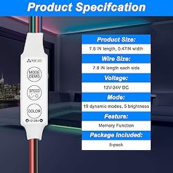 XMSJSIY Mini Led RGB Controller 3 Keys Led Strip Light Brightness Dimmer Controller Switch with Memory Function for DC 12V 24V Multi-Color Led Strip - 5 PCS