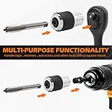 【WIDE USE】This opens up a whole new way of thread chasing, tapping, and even extracting. Battery and air-powered tools, universal joints, extensions, regular ratchets, Both professional and DIY enthusiasts can trust the quality and performance of this product. 【SCREW EXTRACTION TOOL】This tap extraction is the missing tool in your screw extraction scheme. Designed to fit square drive wrenches, offering greater flexibility and convenience. Compatible with a wide range of taps, Nice addition to any toolbox! 【YOU WILL GET】You will get 2pcs tap sockets, designed with small and large size: 20.5x46.5x22.5mm ( bottom dia x height total dia),adjustable tap sleeve #6-1/4",suitable for M3-M6 taps; 20.5x50x27.3mm ( bottom dia x height total dia),adjustable tap sleeve 1/4"-1/2",suitable for M8-M12 taps. 【DURABLE MATERIAL】Adjustable jaws to hold taps securely and prevent slippage. Crafted from durable chrome-molybdenum steel, these tap handles ensure long-term performance even under heavy use,compatible with manual, pneumatic, and electric tools. 【EASY GRIP】Designed for a secure grip on taps, preventing slippage and ensuring precise operation, reducing tool and workpiece damage.Extractor Tool are small enough to fit easily in a dedicated tool drawer