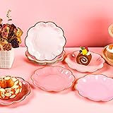 AimFun 48 Pcs Pink Party Plates Gradient Pink Dessert Paper Plates 7inch Gold Foil Scalloped Edge Disposable Cake Plates for Valentines Day Birthday Bridal Baby Shower Wedding Party Supplies