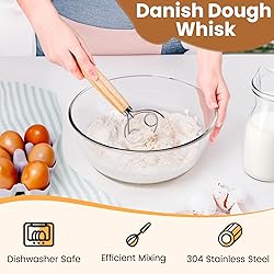 - Elevate your bread baking experience with our Danish Dough Whisk with Bread Making Tools. This bread making kit is tailored to meet the needs of home baking lovers, beginners, experienced bakers, and even professional artisan bakers. With essential tools like the upgraded dough whisk, bread lame for precise scoring, and bench scraper for divides dough, you’ll have everything you need for baking.Our upgraded Danish dough whisk boasts a unique four-ring flow design that increases mixing efficiency, allowing you to create perfectly mixed dough without the hassle of bulky electric mixers. The set also includes a bread scoring tool to add intricate, professional designs to your loaves.Crafted from durable, BPA-free materials, these tools are built to last. They are not only eco-friendly but also incredibly easy to clean—either by rinsing them in water or using a dishwasher. The versatile tools can handle a wide variety of doughs, from sourdough to pizza, cakes, and pastries.Ideal for beginners and experienced bakers alike, this set enhances your bread-making experience while offering a practical, cost-effective solution for all your baking needs.
