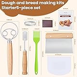 Bread Making Tools Set: This bread making kit includes all the essentials for baking—dough whisk, bread lame, bench scraper, bowl scraper, and pastry brush, along with a user manual. It's perfect for both beginners and professional bakers! Upgraded Dough Whisk Set: Our bread whisk features a four-ring design for faster, more efficient mixing. no need for bulky mixers. The included bread scoring tool allows you to create custom artisan patterns with ease. Bench Scraper Kitchen Tool: Our versatile bench scraper effortlessly scrapes and divides dough. It’s perfect for portioning, scooping, and transferring dough, as well as cleaning loose flour from your countertop. Durable & Easy to Clean: Made from food-grade stainless steel and BPA-free materials, our sourdough tools are built to last. The bread making accessories are easy to clean, just rinse with water or place them in the dishwasher. Multifunctional Baking Set: This bread tools are perfect for a variety of doughs, including sourdough, pastries, cakes, pizza, and more. Whether you’re baking at home, managing a bakery, or perfecting your skills as a professional artisan baker, this set will handle it all.