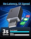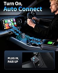 Wide Compatibility - Lifetime Updates: This adapter is compatible with 98% of original factory wired CarPlay systems (2016 and later models). Supports iPhones with iOS 10 and above. Android systems are not supported. Support online firmware upgrades. Offers a 1-year warranty and 24/7 support. (Please confirm compatibility with your vehicle before purchasing. Please feel free to contact us with any questions.) Dual-Core Chip - 5x Faster: 2.4-5.8GHz WiFi and Bluetooth 5.3 support multiple bands, offering better anti-interference capabilities, ensuring fast data transmission and stable connections. 5 times faster than other adapters. Maintains excellent performance in temperatures ranging from -20°C to 70°C Ultimate Copilot - Enhanced Driving: Our car play wireless adapter easily converts wired to wireless connectivity. Control your system with just a voice command, a touch, or a knob. It offers a full range of features including maps, calendar, music playback, Siri voice assistant, phone calls, and radio, all for convenient use Plug and Play - Automatic Connectivity: Only one setup is required, and subsequent automatic connection occurs within 5 seconds every time you start your vehicle, saving you time on frequent setups. CarPlay also works with your car's controls (knobs, buttons, touchpads, or touchscreens) Compact Design - Perfect Fit: 50% smaller than other adapters, it doesn't take up much space in your car or interfere with other ports. The shell is made of flame-retardant ABS material and has undergone over 10,000 plug-in/plug-out tests for durability