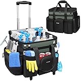- The Ytonet rolling cleaning caddy is exceptionally durable, made from 900D high-strength fabric and wear-resistant fibers, featuring reinforced hardboards for stability under heavy loads and thick padding for tool protection, while the top zipper fully seals the bag for enhanced security and dust resistance. The detachable and foldable trolley features a retractable frame for large cleaning caddies, high-quality silent rubber wheels for smooth transport on various terrains, and multiple Velcro straps to secure the bag and prevent tipping during use. The 39L cleaning caddy features a detachable foldable divider for organized storage, along with a retractable side mesh bag, elastic fixed belt, front garbage bag, insulated sealed bag, and 14 multifunctional pockets for efficient tool organization. The cleaning supplies organizer features a separate insulated compartment that maintains optimal temperature for cleaning liquids and wipes, prevents spills, and accommodates temperature-sensitive items, food, and beverages for versatile and organized storage. This multifunctional cleaning caddy on wheels is waterproof, scratch-proof, and easy to clean, providing a variety of carrying options, organizing cleaning supplies in a stylish way, and suitable for office tools, car care supplies, gardening equipment, and other uses. Ytonet rolling cleaning caddy bag with detachable trolley brings you a better life! Color: Black Material: 900D fabric material+PP board Size: 16In(41CM)*11In(28CM)*13.5In(34.5CM)
