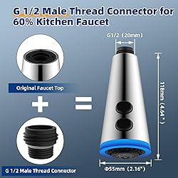 LED Temperature Display: Hygie Rinse pull-down faucet head designed with LED temperature display powered by water flow, provides real-time temperature readings and blue lighting in dark environments for both ambiance and practicality Four Function Sprayer head: Multiple water flow modes are available to adapt to daily use flexibly: Soft Bubble Mode for gently rinsing, Strong Spray Mode for rushing, the Water Blade Mode for scouring the stubborn stains, and One-click to stop and revert Considerate Fitting Kits: Comes with 15pcs adapters compatible with American Standard faucets, AquaSourse, Kohler, Hansgrohe, Grohe, Moen, Delta, and almost all types of faucets; Included aerator key/O-ring washer/Teflon tape for installation Premium Raw Material: Hygie Rinse Pull Down Kitchen Faucet Head is made of good quality thickened plastic and covered with a fine metal finish, lightweight and delicate; Silicone nozzle, easy to clean and rust-resistant, ensuring water quality All-round Cleaning: The pull-down sprayer head can adjust the angle and position of the nozzle at will, easy to flush each sanitary dead corner; The nozzle is designed to make the water flow concentrated and does not cause polluted water splash