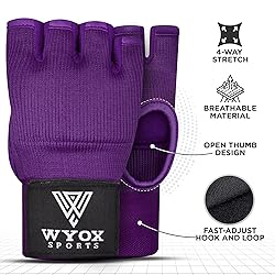 - WYOX Gel Boxing Hand Wraps Inner Gloves are built for fighters who demand quick gear-up, durable protection, and peak performance. Whether you’re boxing, kickboxing, or training in MMA or Muay Thai, these wraps offer the perfect balance of comfort, support, and impact resistance. Designed with thick gel padding, these boxing hand wraps for men and women absorb shock during intense bag work and sparring. The fingerless, slip-on style makes them ideal quick wraps boxing enthusiasts love—offering hassle-free wear with a secure fit. With 80cm long hook-and-loop wrist straps, you get reliable wrist support and compression, reducing strain and boosting performance. The breathable, elasticated material keeps hands cool, dry, and comfortable throughout long training sessions. From beginners to professionals, WYOX hand wraps are available in multiple sizes and colors to suit every athlete. Use them under your gloves or on their own—whether you're searching for gel boxing wraps, youth boxing wraps, or martial arts hand wraps, this is your go-to gear. Train harder, wrap faster, and strike with confidence—WYOX is trusted by athletes worldwide.