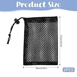 Package Included: You will get 6 pcs small black nylon mesh bags with size of 6 x 4 inches. Secure Closure: A drawstring bag is characterized by a convenient drawstring design, there is a strong sliding drawstring lock to ensure that items will not fall out. Sturdy and Lightweight: Our mesh storage bags are made of strong nylon material, lightweight and tear-resistant, and can last for a long time use. and making it easy to take out the items you need, The compact drawstring bag is lightweight, easy to carry, and store. Quick Drying and Odor-Free: Our small drawstring bags are designed with breathable material, allowing wet items to dry quickly and efficiently. Versatile Usage: These mesh bag drawstring have a wide range of applications. Use them as pool toy bags, travel stuff bags, grocery bag holders, cosmetic storage bags, or underwear laundry bags.