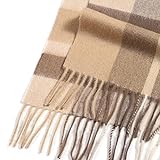 Temminc Wool Scarf for Men and Women, Merino Wool Plaid Winter Scarf, Thick Soft Tartan Knitted Neckwear for Cold Weather