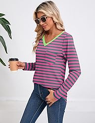 Note: Machine wash, no bleaching. Size details are mentioned in "BASHAFO SIZE CHART". Material: The womens fall long sleeve tops are made of high quality stretchy and soft fabric, giving you a comfortable wearing experience. Design: Striped shirt is classic and versatile, v-neck color block makes a fashion style. Top pocket design is casual and portable. Matching: The fall tops for women give you style versatility. You can wear it alone with jeans, bustier, leggings, heels, necklaces and so on. You can also pair it with a jacket, coat, sweater, etc. to create a layering effect. Occasion: The womens long sleeve tops are suitable for various occasions, such as daily wear, work, vacation, school, date, travel, street, party, gathering, clubs and so on.
