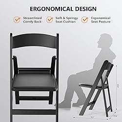 Durable and Comfortable: All frame with good resin material supports outdoor use in all types of weather and is built to be durable. The chair with soft cushion, which is ideal for maintaining comfort even after long hours of use Aesthetics and Effective Support: The chair is simple, stylish and aesthetically pleasing. Designed to allow for a comfortable seating position and provides effective support for users of all sizes Easy to Carry and Use : The chair is easy to open, close and fold for easily carry to many places and use Easy to Store and Maintain: The chair is foldable easily which makes the chair suitable for all kinds of space storage convenience. The chair can be cleaned and kept in good appearance by simply wiping it on a daily basis Wide Range of Uses: The chair can be used in indoor and outdoor for parties, dining, weddings, office activities, various leisure activities