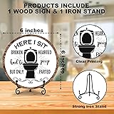 - Dimensions: 6 x 6 inch round wooden sign with iron stand.Wooden Sign Material: This wooden sign is made of solid wood, sturdy and durable, whether you want to add a durable sign to your desktop or just want to buy a sign made of high-quality materials, this sign is your perfect choice.Exquisite Design: This wooden sign decoration is composed of exquisite patterns and interesting language, the beautiful and interesting combination of images makes this sign more distinctive and brings good visual enjoyment.Applicable Occasions: You can use this wooden sign to decorate your home, office, kitchen, bedroom, living room, cafe, tea room, restaurant, bathroom, classroom and so on.Perfect Gift: This wooden plaque with interesting themed text design can be your personalized and warm gift choice. It can be given to friends, family, teachers, colleagues and bosses.