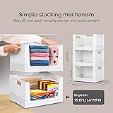 TidyFriend Stackable Storage Bins with Wheels, 3 Pack Foldable Storage Bins Box, Plastic Shelves Drawer Organizer Container for Closet Office Bedroom Kitchen Bathroom (Ivory)