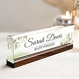 Extous Custom Leaf Desk Name Plate, Personalized Leaf Name Plate, Personalized Floral Name Plate Acrylic for Desk, Personalized Acrylic Floral Desk Name Plate, Acrylic Desk Ornaments, Custom Style 52