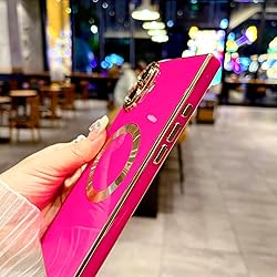 Owncase Magnetic for iPhone 16 Plus Case, (Compatible with MagSafe) (Full Camera Lens Protection) (Reinforced Corners) Shockproof Soft TPU Electroplate Edge Bumper Case for Women, Hot Pink