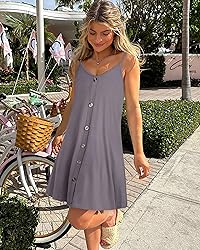 Features: Womens summer dresses, the buttons are just for decoration. Designed with adjustable thin spaghetti straps, v neckline, two side pockets, about knee length, and a breezy swing style, can be worn as a beach dress, swimsuit coverup, or tank dress Material: Button down dress for women is made of soft cotton. Comfortable, stretchy, and lightweight, making them easy to dress up and cover up well Occasions: Spaghetti strap dresses for women suited for beach party, cocktail, island, pool, club, dating, evening, nightgowns, shopping, work, street, travel, backyard cookout, etc. Hawaiian dresses for women are perfect vacation essentials in spring and summer Easy Match: Sundresses for women go well with sandals, a sun hat, sunglasses, chic necklaces or bikini, bathing suits for stylish looks. During fall and winter, wearing a jacket or cardigan over the casual dress is fashionable Gifts: Womens dresses fit most shapes of ladies, elegant and trendy, making nice gifts for moms or girlfriends on festive days