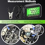 - 2 Effortless Operation: With the inductive function ,You can hold the gauge meter next to the spark plug cable between 3-5CM to measure the speed ; Also you can just clamp the copper clip of the rpm meter directly to the spark Plug wire to get an accurate reading