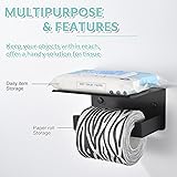 APLusee Matte Black Toilet Paper Holder with Shelf, Left Side 304 Stainless Steel Tissue Hanger, Wall Mounted